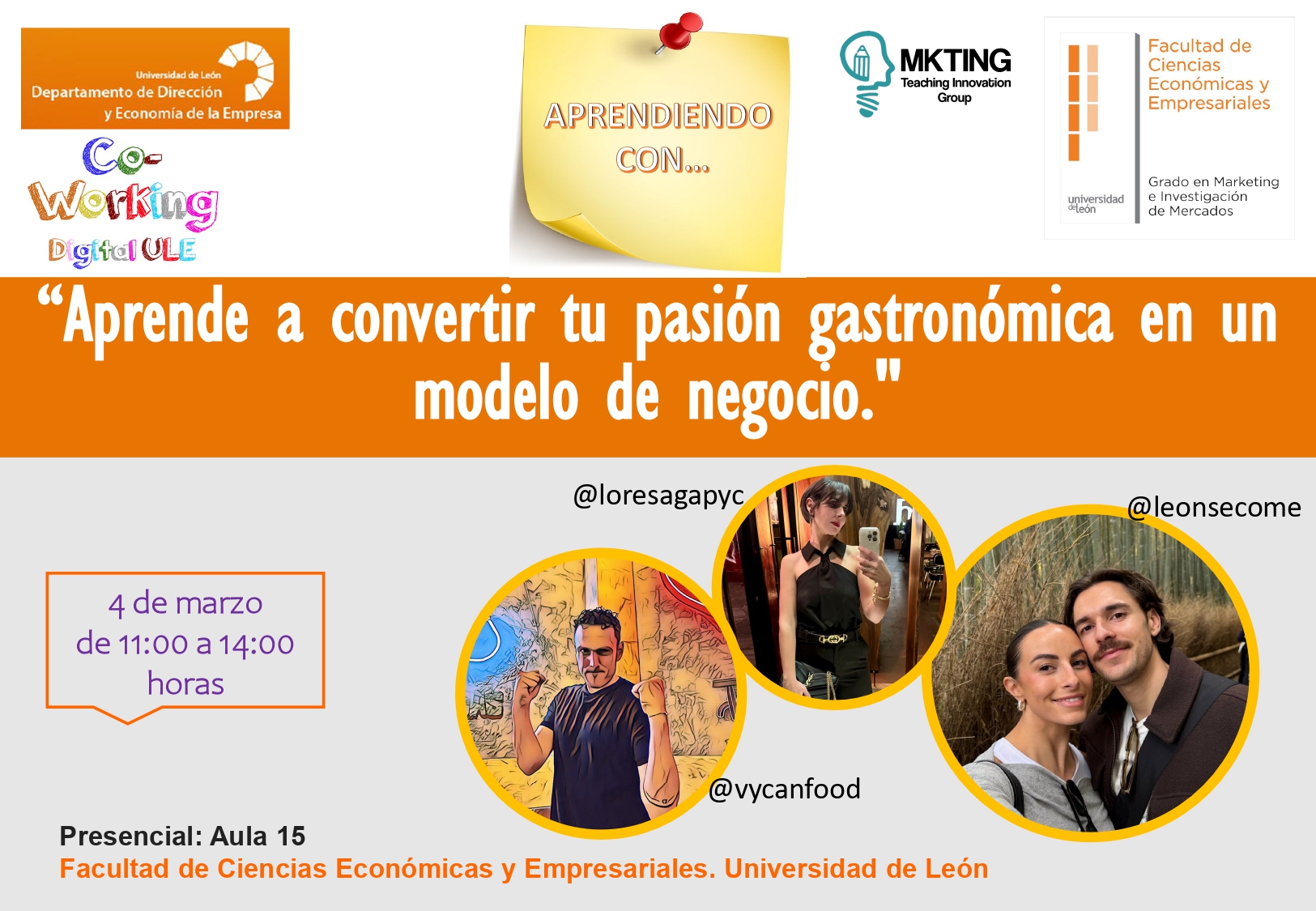 - Lugar: Aula 8 de la Facultad de Ciencias Económicas y Empresariales de la Universidad de León