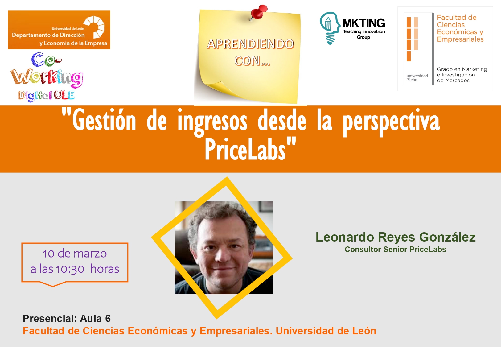 - Lugar: Aula 10 de la Facultad de Ciencias Económicas y Empresariales de la Universidad de León